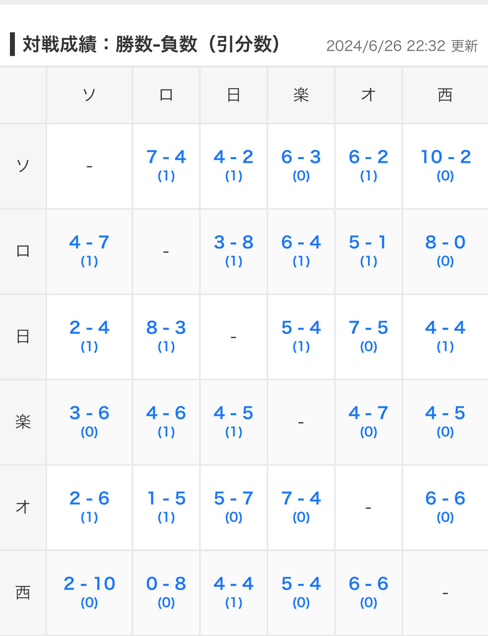 交流戦優勝の楽天、パ・リーグ全チームに負け越し