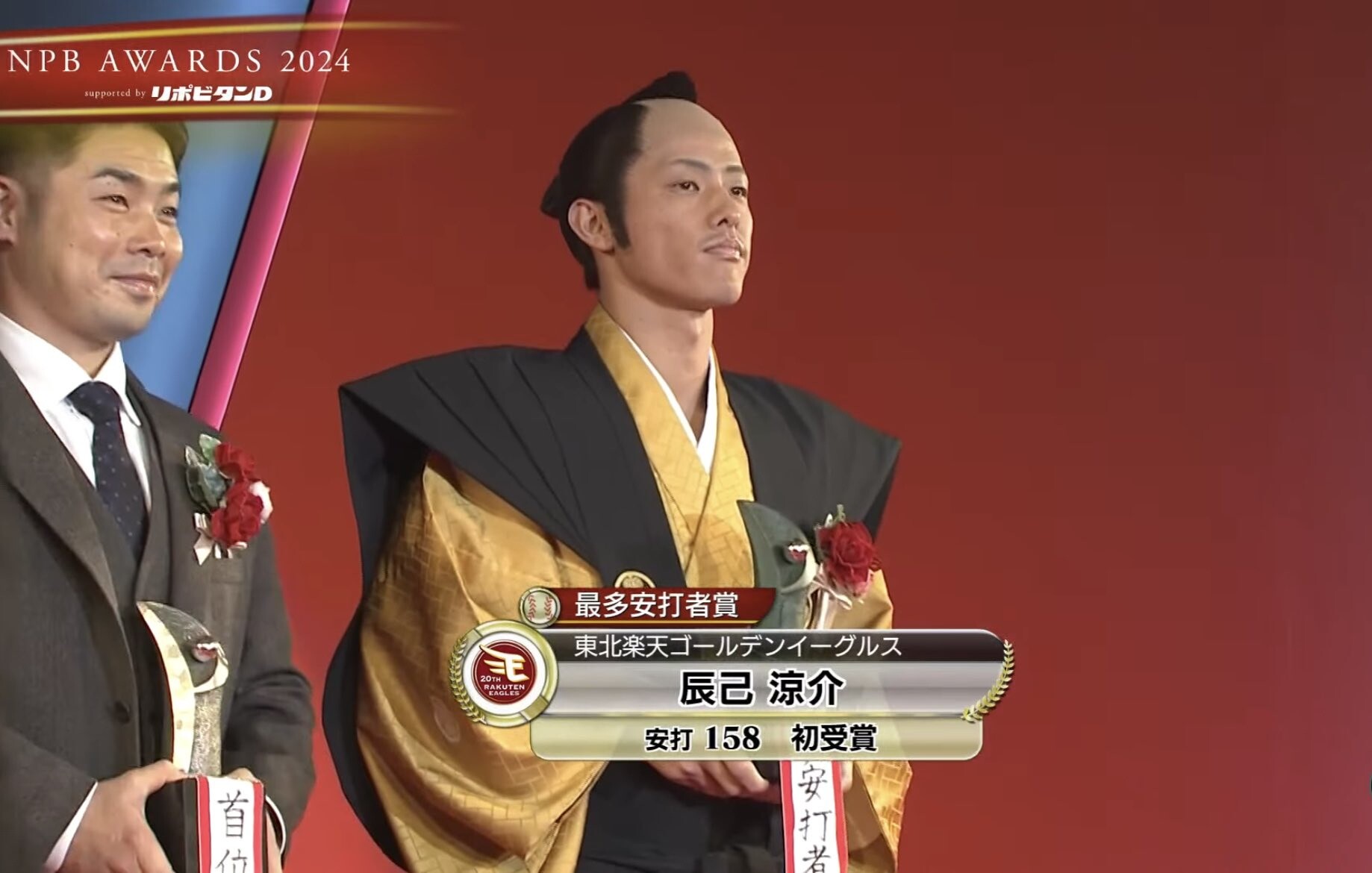 【朗報】 辰己涼介、NPBアワードに侍スタイルで登場wwww