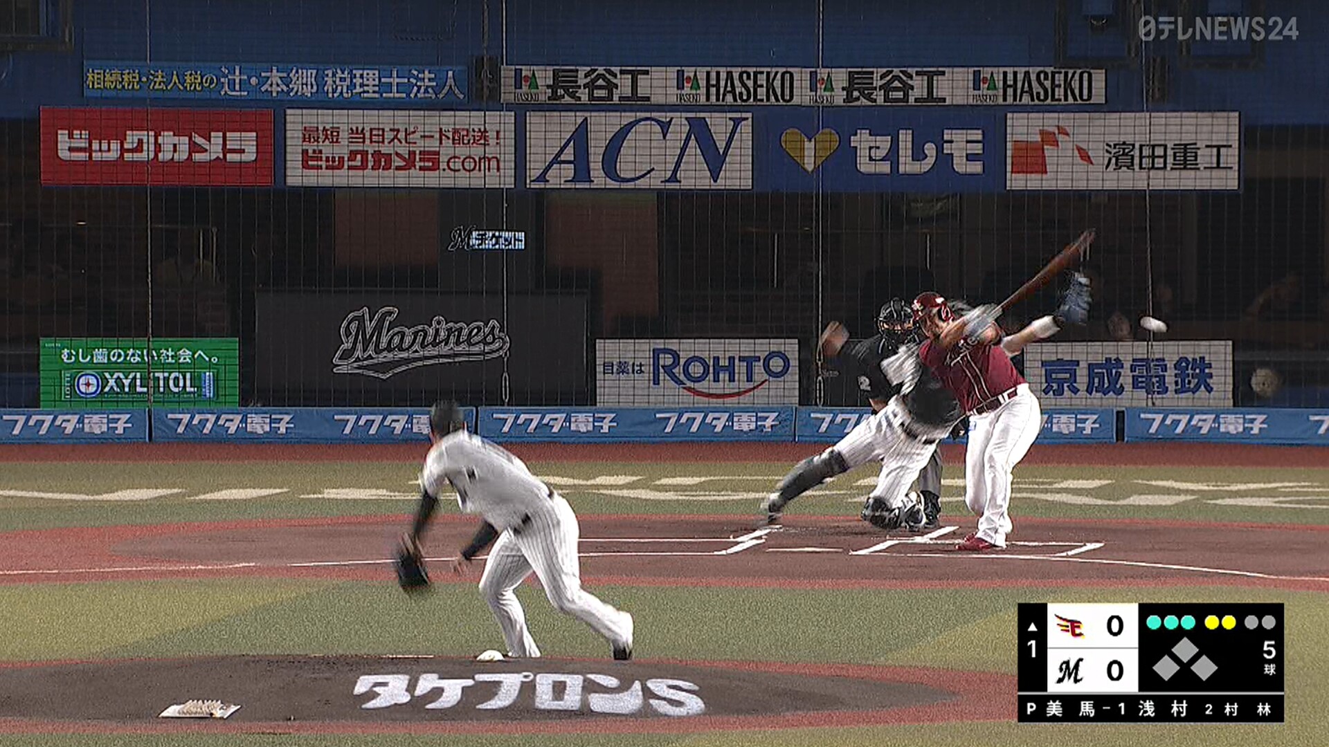 美馬学、現役最後の1球 浅村が背中を通過する大暴投を空振り三振
