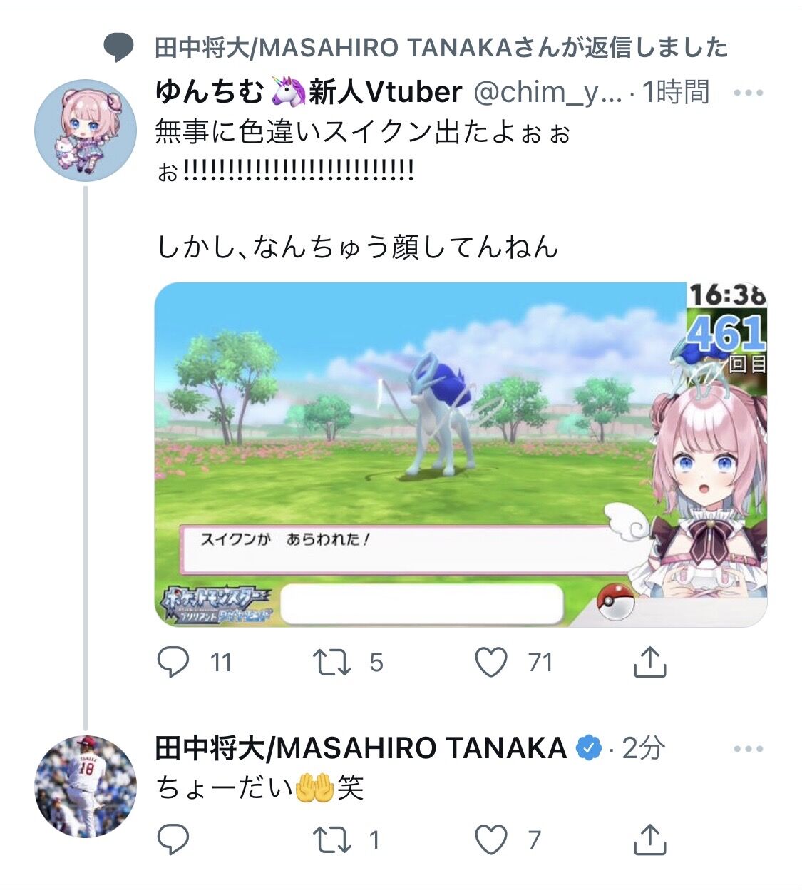 【マー君】田中将大さん、新人Vtuberにリプってしまうwww