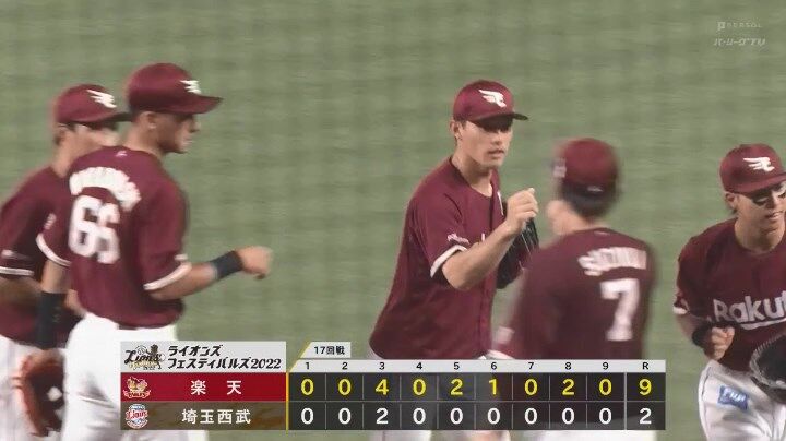 【西武対楽天17回戦】楽天が9-2で西武に快勝し3位浮上!首位と2差で前半終了!辰己が一発含む3安打2打点!辛島5回2失点3勝目!西武は楽天戦の連勝が7でストップ