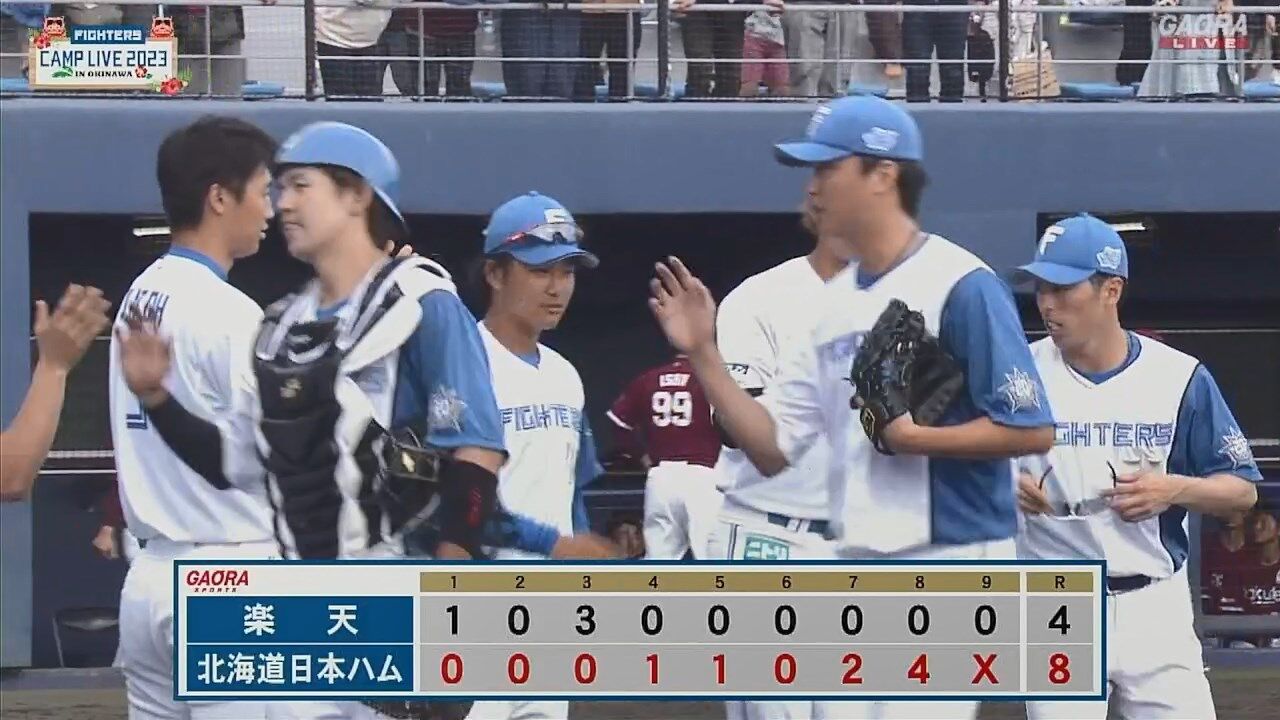 【日本ハム対楽天練習試合】日本ハムが8-4で楽天に逆転勝利!8回に万波勝ち越し犠牲フライ!水野2ラン!ドラ1矢澤猛打賞!
