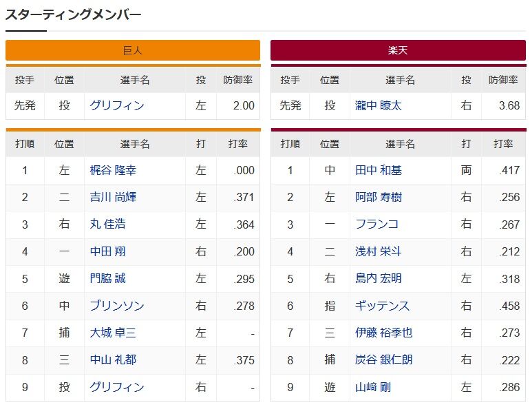【楽天】 【巨人】