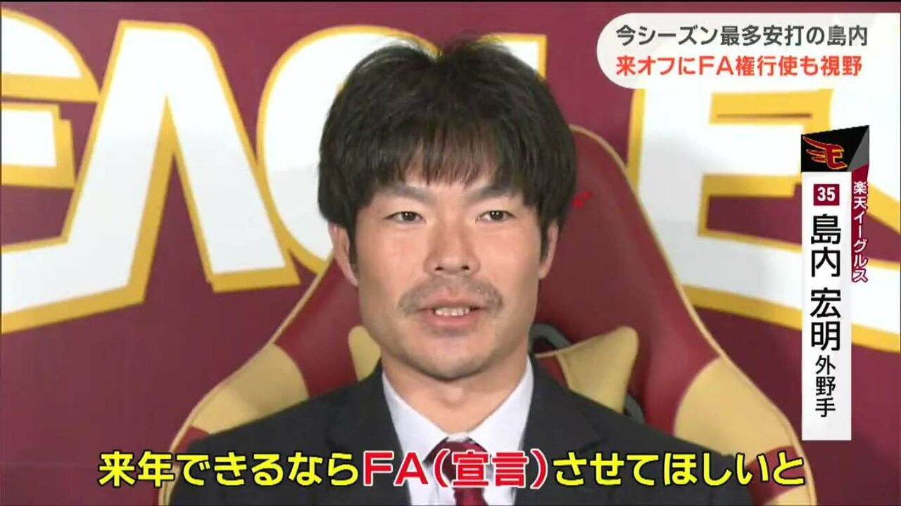 楽天島内「FAしたい。違うユニフォームを着たい」→.148(54-8) 0本 1打点 OPS.413