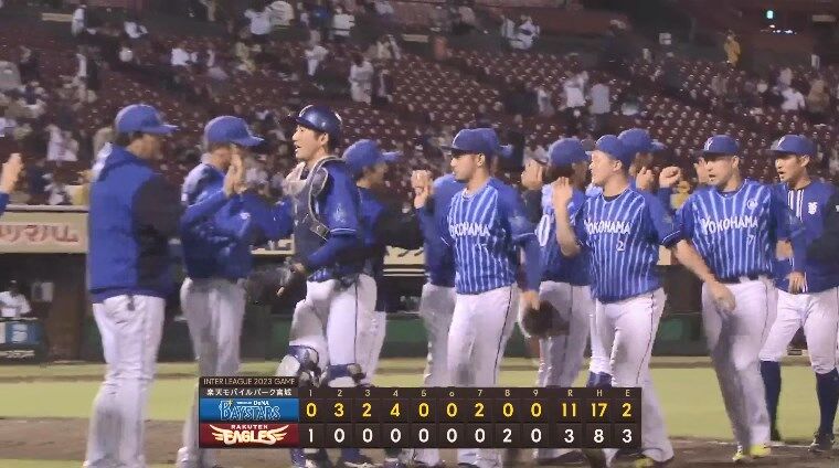【楽天対DeNA3回戦】DeNAが11-3で楽天に快勝し交流戦開幕カード勝ち越し!先発全員の17安打!東7回無失点で5勝目!楽天は交流戦最初のカード負け越し、借金は再び10に