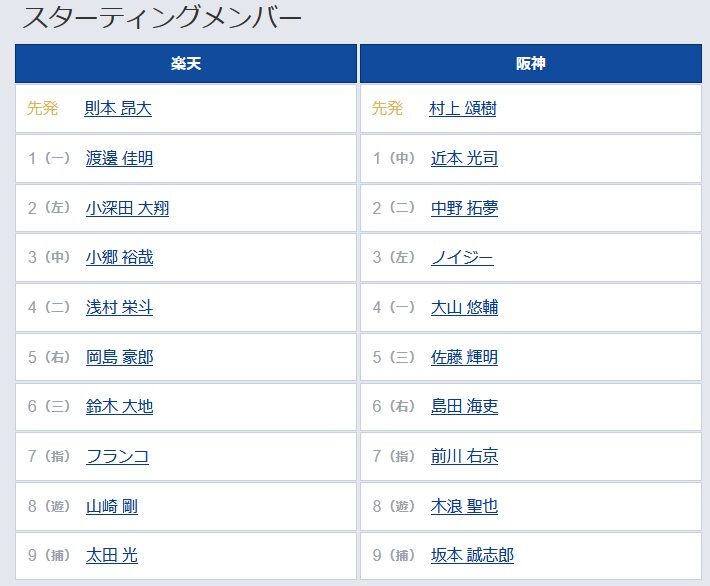 <6/6(火)>楽天 × 阪神(先発/則本 × 村上)