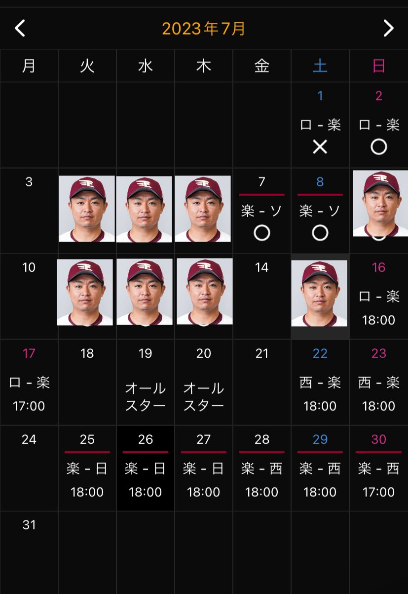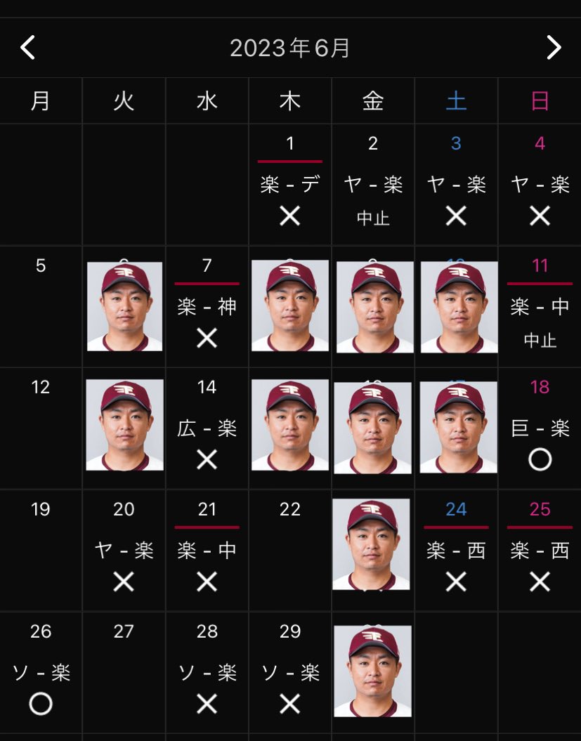 楽天、酒居知史さんの6・7月…