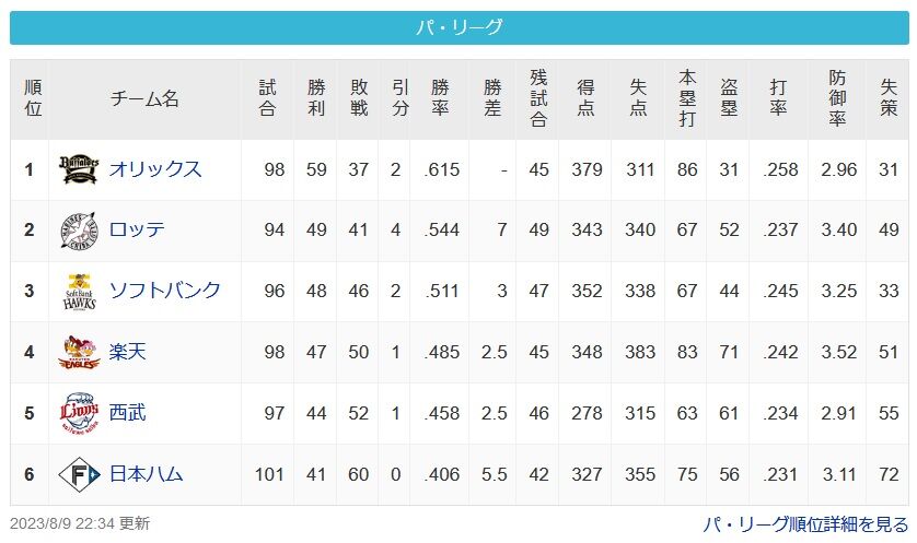 3位ソフトバンク4位楽天2.5ゲーム差←これ