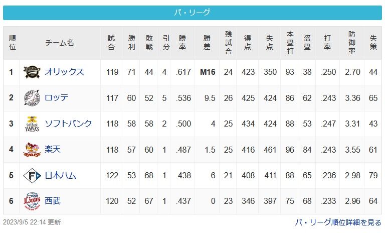 ソフトバンクホークスさん、3位楽天と1.5ゲーム差
