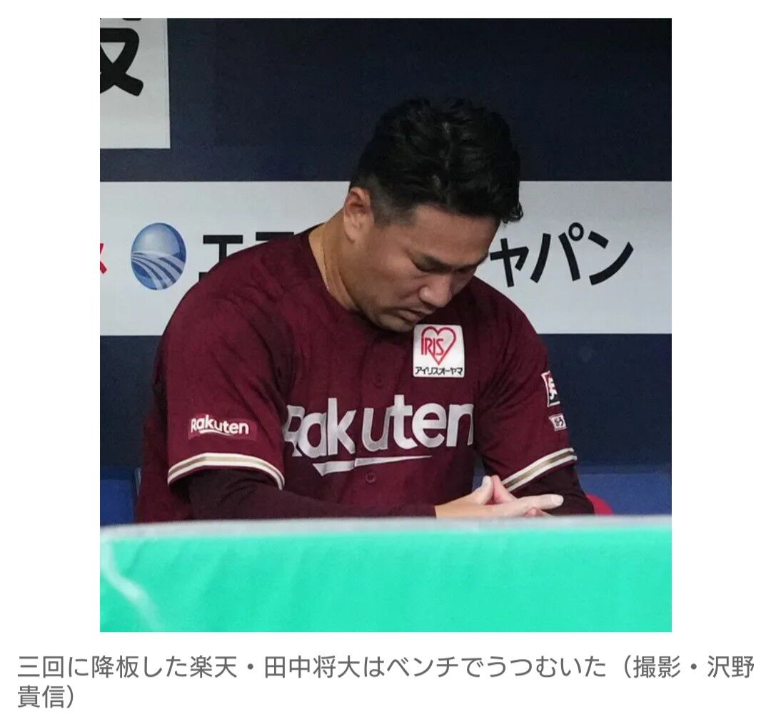 楽天・田中将大投手(34)が18日のオリックス戦(京セラ)に先発も2回1/3を7安打5失点と炎上し10敗目(7勝)を喫した。