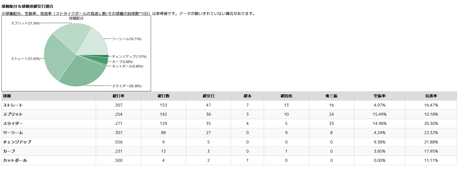 被打率.289 QS率45.83% 最高球速151km/h 対右被打率.309 対左被打率.266
